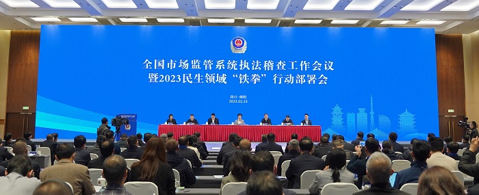 - 全國(guó)市場(chǎng)監(jiān)管系統(tǒng)執(zhí)法稽查工作暨2023民... 2月23日,全國(guó)市場(chǎng)監(jiān)管系統(tǒng)執(zhí)法稽查工作會(huì)議暨2023民生領(lǐng)域“鐵拳”行動(dòng)部署會(huì)在四川省綿陽(yáng)市舉行。會(huì)議全面貫徹黨的二十大精神,深入落實(shí)全國(guó)市場(chǎng)監(jiān)管工作會(huì)議部署...